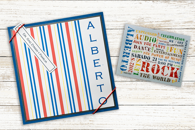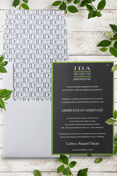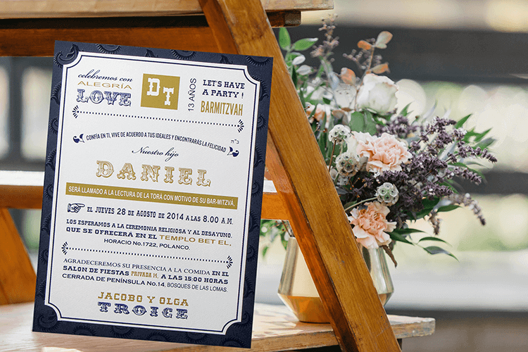 Celebra esta ocasión tan especial con nuestras invitaciones para para Bar y Bat Mitzvah, ponemos a tu disposición algunos de nuestros modelos con temas y estilos increíbles. Hay diferentes tamaños, tipografías y tipos de papel. Elige y personaliza tu invitación. Podemos realizarlas en digital o impresas.